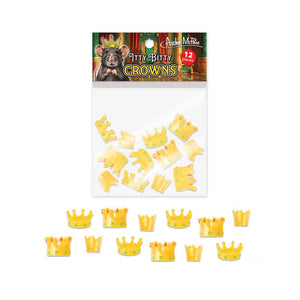 Itty Bitty Crowns are the perfect cranium caps for royal runts! You get 12 Itty Bitty Crowns, between 5/16" (0.7 cm) to 1/2" (1.2 cm) tall, made of soft vinyl and fancy as all get out. They come in three different styles and sizes. Turn your action figures and blind box toys into instant Kings and Queens! Illustrated bag of 12 Itty Bitty Crowns.